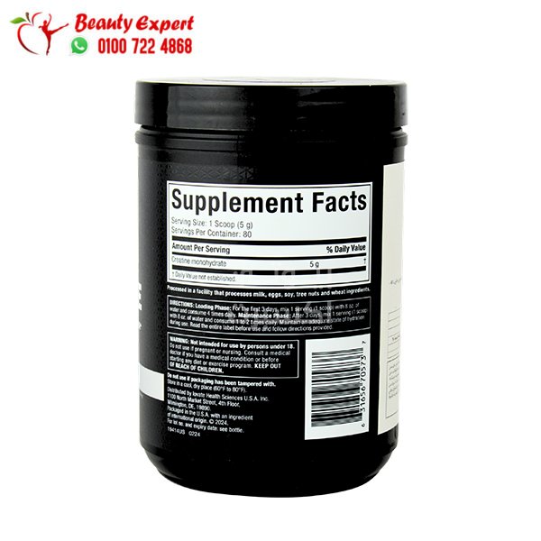 100% Micronized Creatine Monohydrate: المكون الأساسي المسؤول عن تعزيز الطاقة، وزيادة القوة، وتحفيز نمو العضلات.