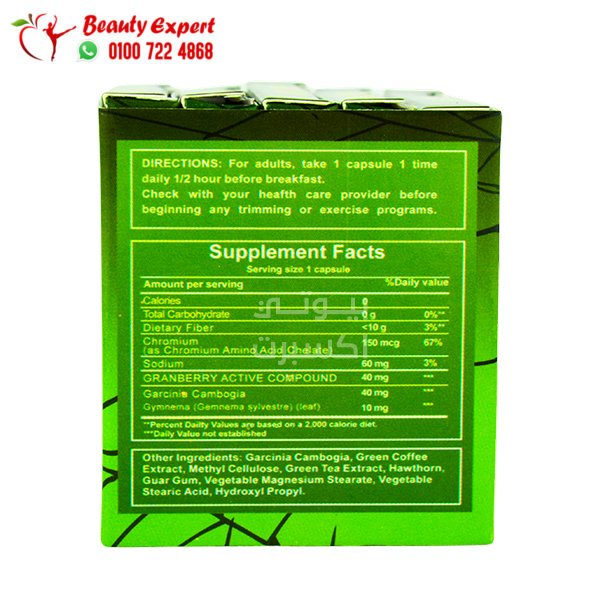 - مستخلص الجارسينا كامبوجيا: لتقليل الشهية ومنع تراكم الدهون.